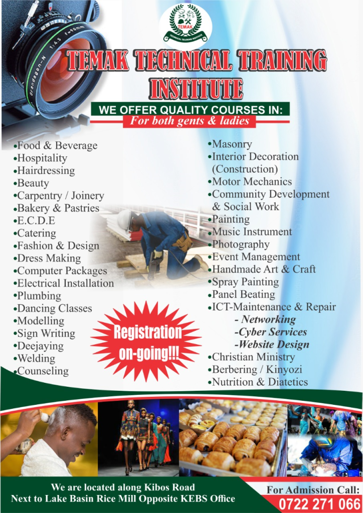 Next to Lake Basin Rice Mill, directly opposite KEBS office For admission, call us on: 0722271006
